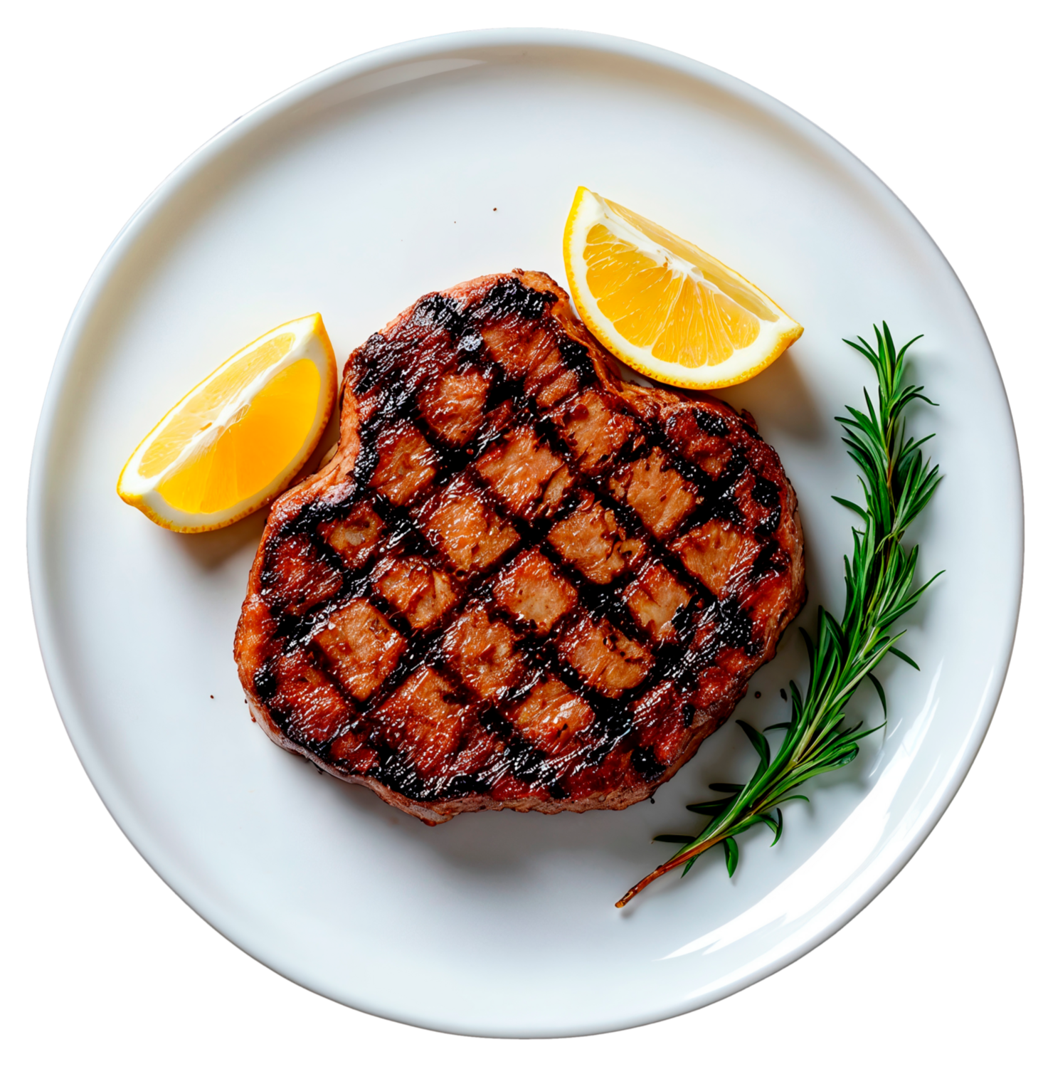 ростбиф из телятины на подушке из свежего огурца и моркови в медово-горчичном соусе,